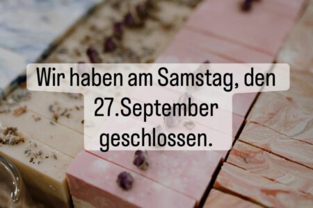Liebe Seifenfreunde, am Samstag den 27.9.2025 haben wir leider geschlossen. Alles dringende vorher oder ab dem Montag darauf besorgen 🙂 Danke für euer Verständnis ♥
